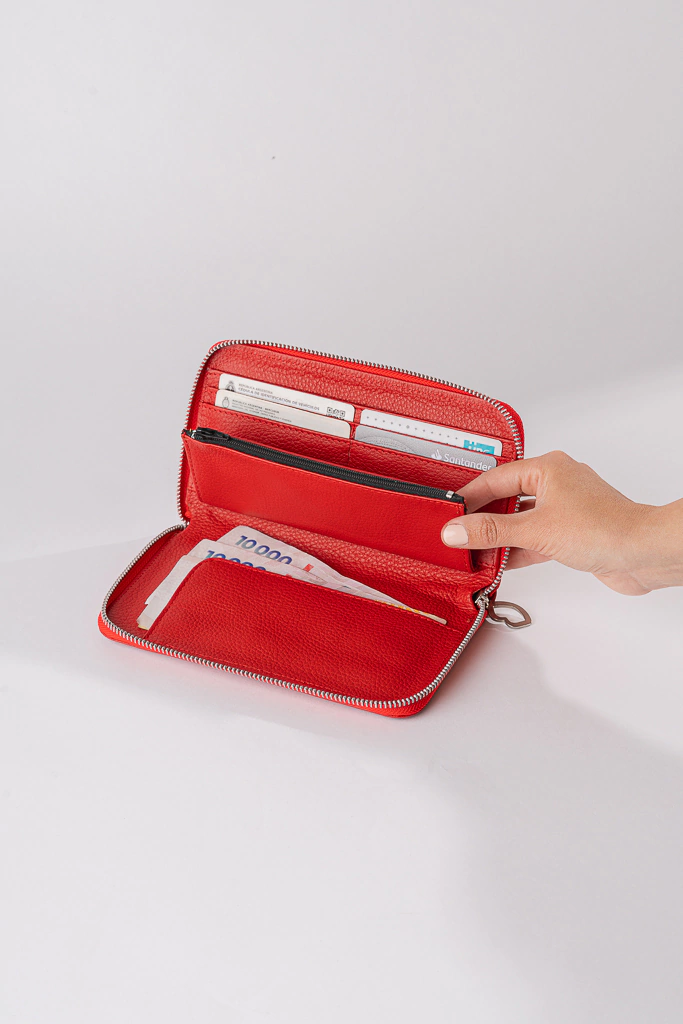 Completamente fabricada en cuero vacuno graneado, en su interior posee portabilletes, bolsillo monedero con cierre, tarjetero x4, y una división para mas tarjetas o papeles. Su apertura es con cierre metálico, lo que nos posibilita guardar aun mas cosas en su interior y tiene herrajes exclusivos de la marca.