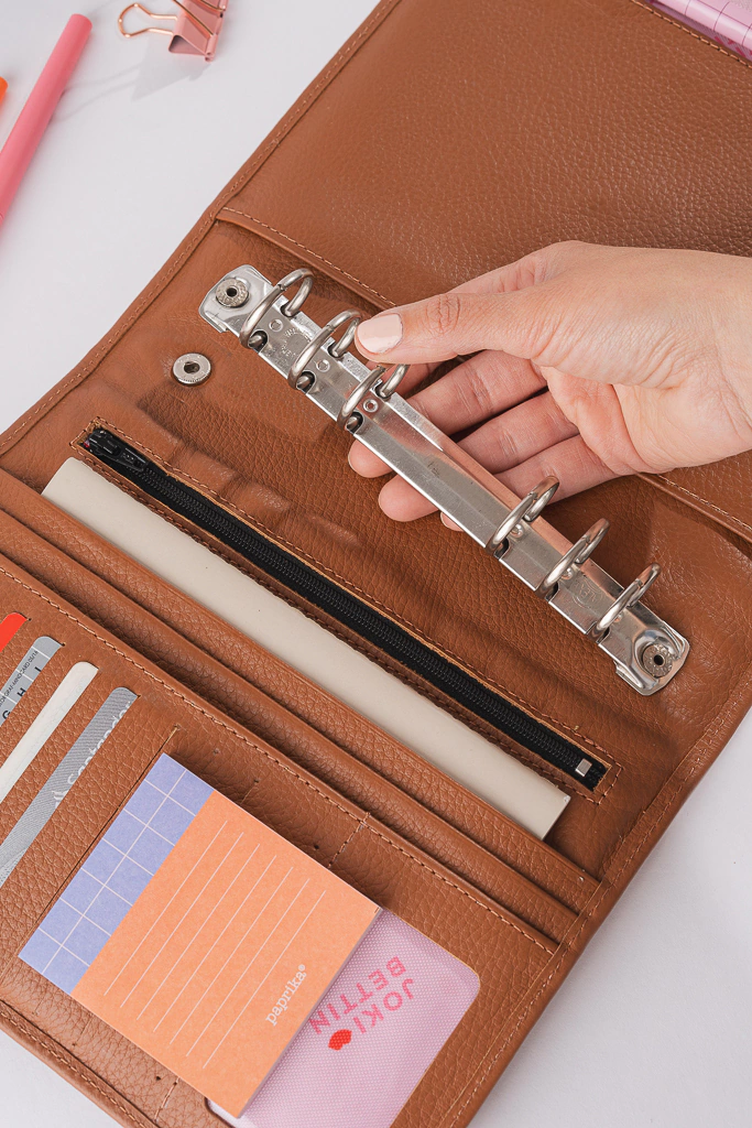 Asi es, se adapta a tu manera! Es decir que si a vos te gustan las agendas encuadernadas podes sacarle los anillos y utilizar el bolsillo para engancharla (recomendamos tamaño A5), y si no ponerle un repuesto de agenda N°7, o utilizar ambos. No es genial?