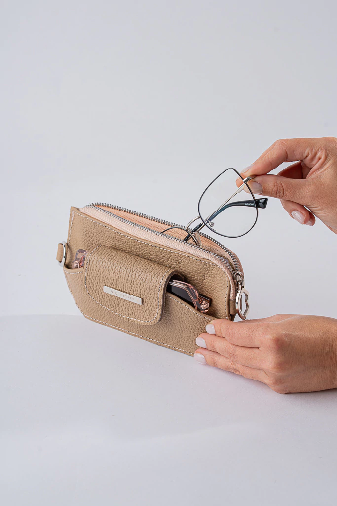 Cuenta con espacio para dos pares de anteojos o, si lo preferís, podés llevar un solo par y aprovechar el compartimento con cierre para guardar dinero, tu celu u otros esenciales.