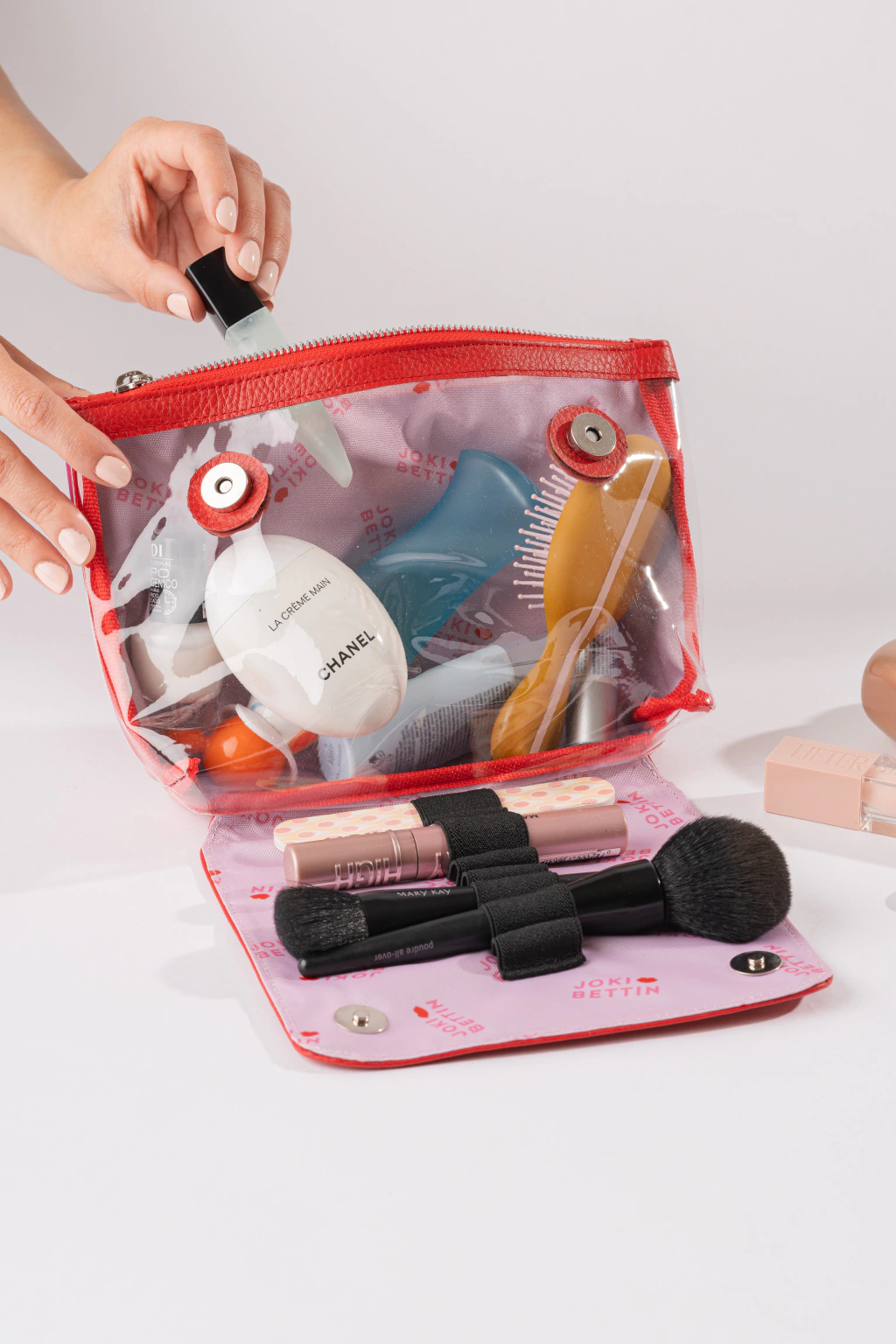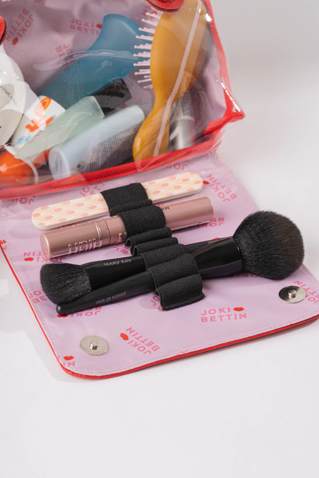 El neceser brochero además de tener una solapa para brochas y lápices, tiene una cara transparente para poder ver y encontrar fácilmente lo que buscas. Es súper práctico para uso cotidiano!